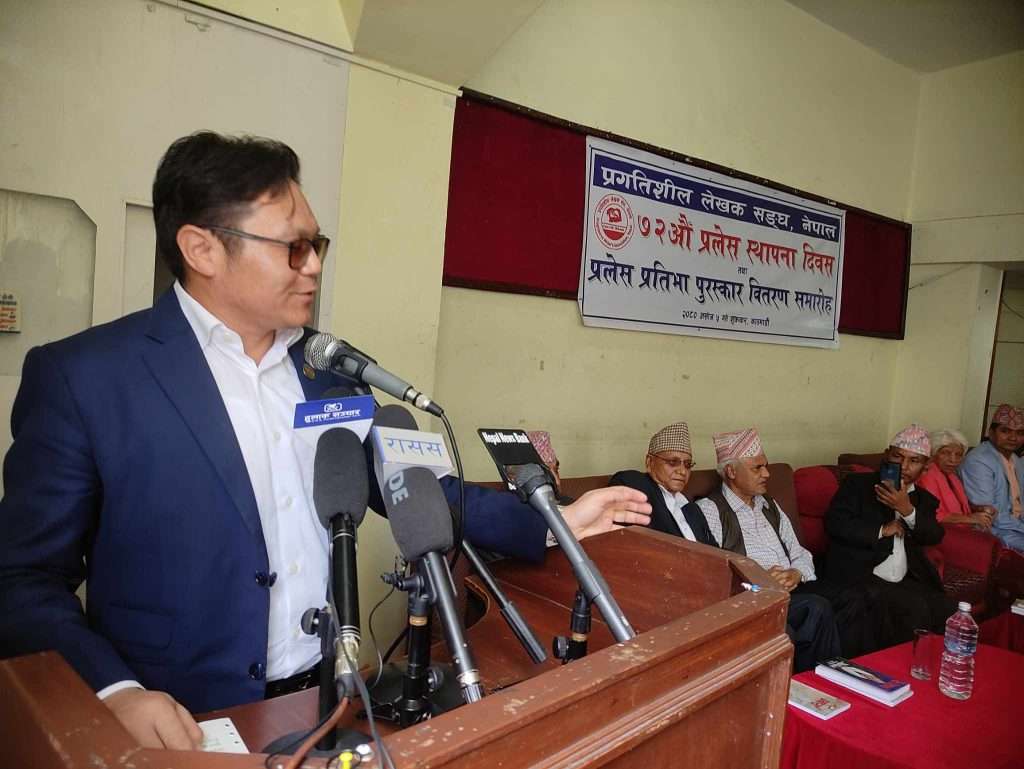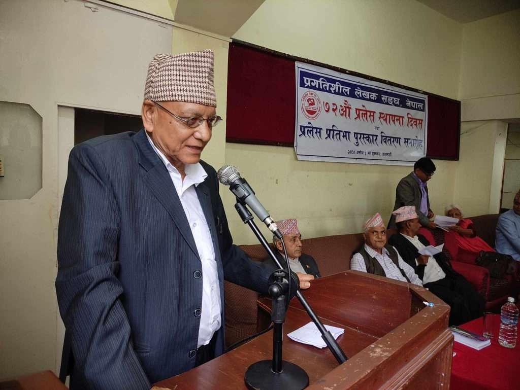 काठमाडौँ । ‘विश्वमा कम्युनिस्ट आन्दोलन रक्षात्मक अवस्थामा पुगेको तथा नेपालको बाम आन्दोलन पनि टुट फुटको अवस्थाबाट अगाडि बढिरहेको सन्दर्भमा प्रगतिशील लेखक सङ्घ, एकताको दिशामा क्रियाशील भइरहनु गौरवको कुरा भएको’ संस्कृति, पर्यटन तथा नागरिक उड्डयन मन्त्री सूदन किराँतीले बताउनुभयो । सङ्घको ७२औँ स्थापना दिवस तथा प्रलेस प्रतिभा पुरस्कारको उद्घाटन मन्तव्यमा वहाँले सो धारणा राख्नुभएको हो ।