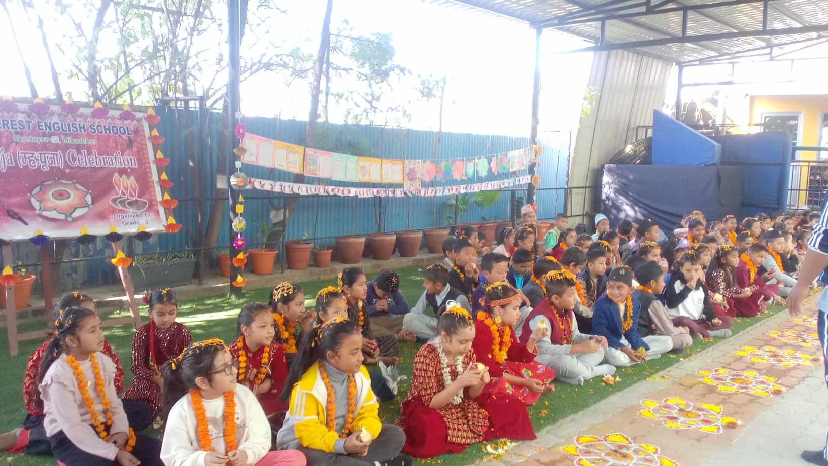 स्कुलमा कक्षा ३ का विद्यार्थीको आयोजनामा म्हःपूजा गरिएको थियो । त्यस अनुसार विद्यार्थीहरुले लहरै बसेर पूजा गरेका थिए ।