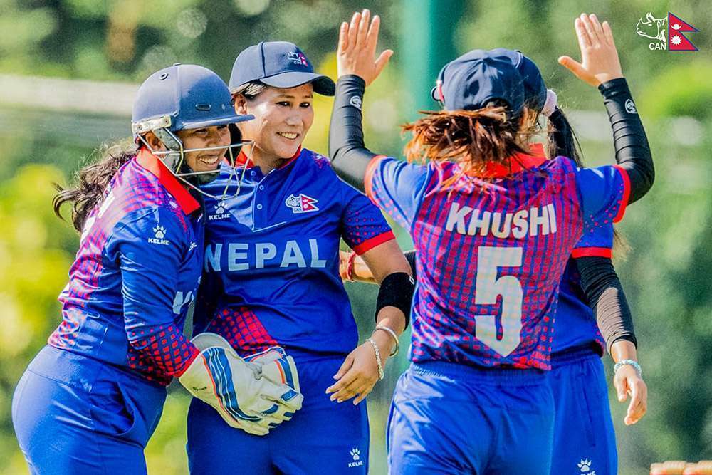 मंसिर ३ ,काठमाडौँ । नेपाल चारदेशीय महिला टी-२० सिरिजमा तेस्रो भएको छ । आइतबार सम्पन्न तेस्रो स्थानको लागि भएको खेलमा नेपालले जापानलाई ४५ रनले पराजित गर्दै तेस्रो भएको हो ।