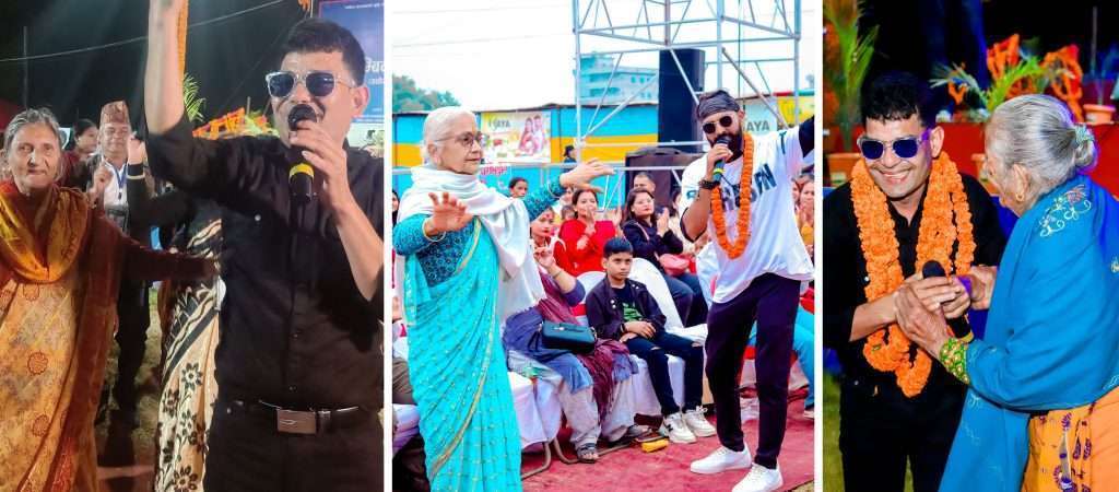 गायक नवीनकै गीत सुनेर अर्की ७५ वर्षीय राधा गौतमले पनि जोसका साथ नाचेर साथ दिइन् । भैरहवा निवासी गौतमले ‘भ्रष्टाचारी जतिलाई पुर्याइदिएँ छेउ’ दोहोराउँदै उपस्थित अन्य कलाकारलाई अकमक्क पारिन् । युवाहरूले पनि गायकलाई नाचेर साथ दिइरहँदा यी दुई ज्येष्ठ नागरिक आमाहरू त प्रतिनिधिमूलक पात्र हुन् ।