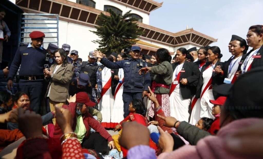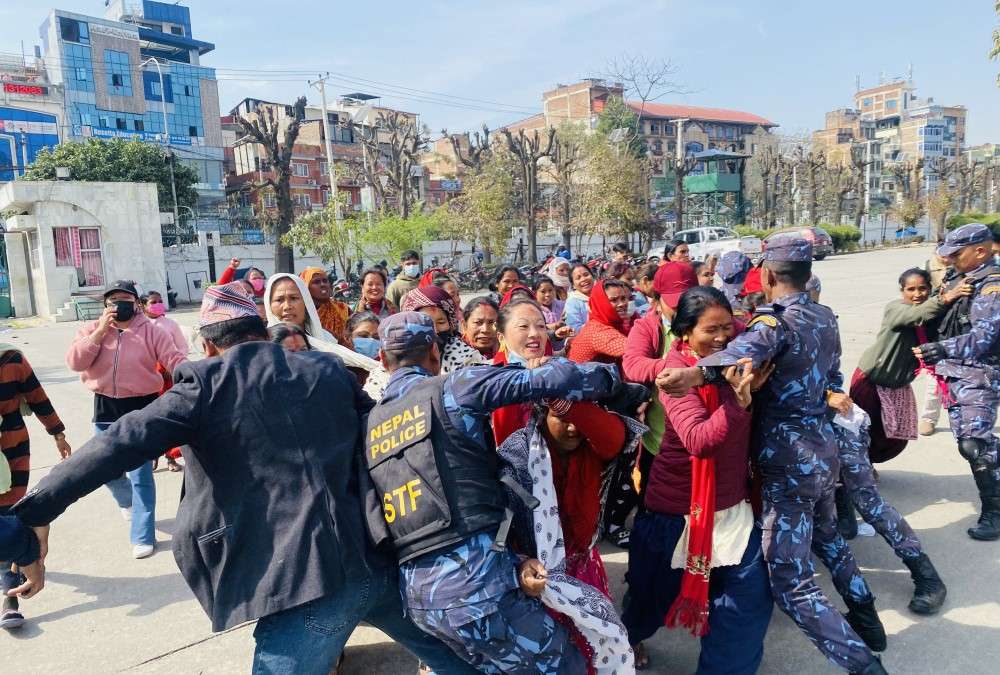 १४ फाल्गुन, काठमाण्डौं – लघुवित्त ऋणीहरुले काठमाडौंको नयाँ बानेश्वरस्थित संसद् भवन परिसरभित्र प्रवेश गरेर विरोध प्रदर्शन गरेका छन् । संसद् भवनमा बैठक सञ्चालन भइरहेको बेलामा लघुवित्त ऋणीहरुले परिसरमै पुगेर नाराबाजी गरेका हुन् ।