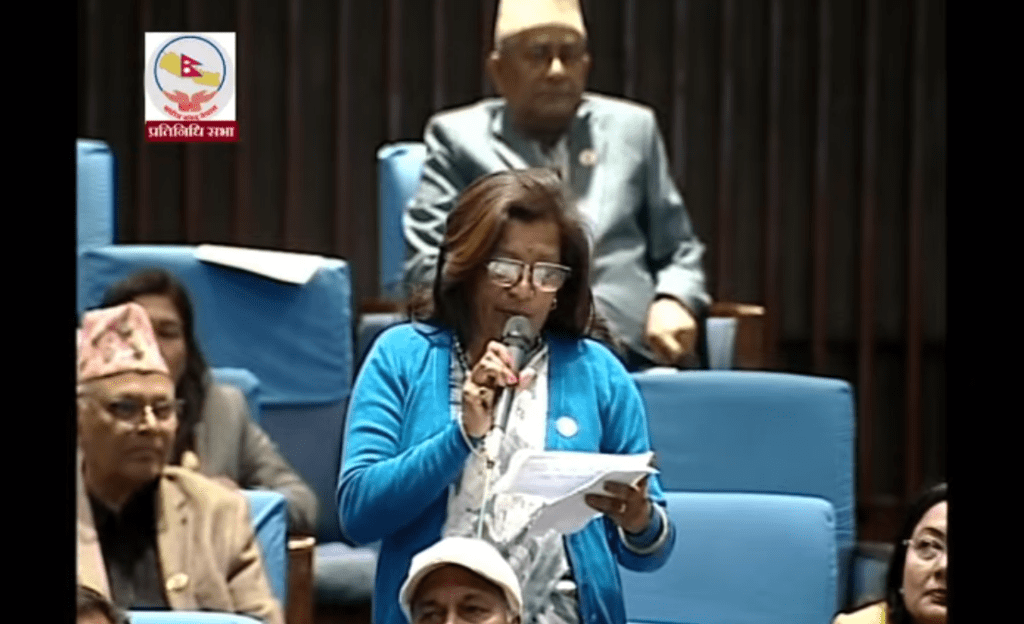 शुक्रबारको प्रतिनिधिसभा बैठकको शून्य समयमा बोल्दै सुन प्रकरणमा अर्थमन्त्री वर्षमान पुनको पनि नाम जोडिएको बताइन् । “सत्ता नेतृत्व गरिरहेका दल माओवादी केन्द्रका थुप्रै नेता र उनका परिवारका सदस्यमाथि सुनका जलप लगाइसकेको छ । उहाँहरू सुनले पहेँलपुर भइसक्नुभएको छ,” उनले भनिन्, “हुँदा हुदाँ माननीय अर्थमन्त्रीज्यूको नाम सुन प्रकरणमा जोडिएको छ ।”
