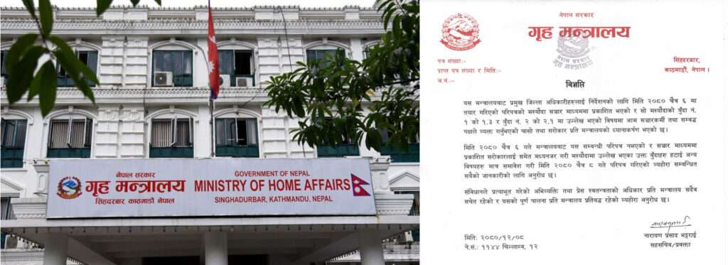 ८ चैत्र, काठमाडौं – सञ्चार माध्यममा आउने विषयवस्तुको नियमन गर्ने गरी देशभरका जिल्ला प्रशासन कार्यालयलाई निर्देशन दिएको विषयमा आलोचना भएपछि गृह मन्त्रालयले स्पष्टीकरण दिएको छ ।