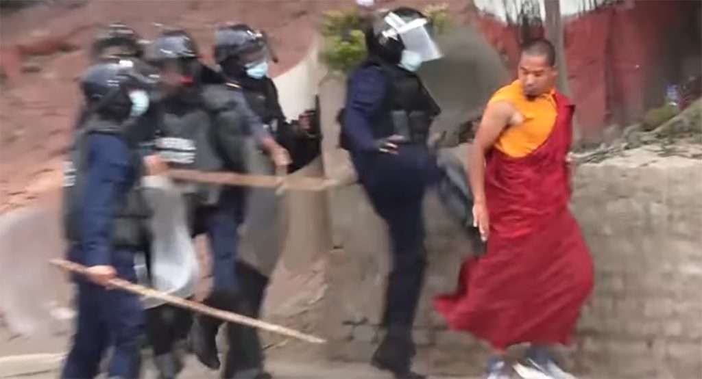 निषेधित क्षेत्र तोड्ने क्रममा केहीबेर दोहोरो झडपसमेत भएको थियो। प्रहरीले बल प्रयोग गर्दा भिक्षुमाथि दुर्व्यवहार भएको थियो।