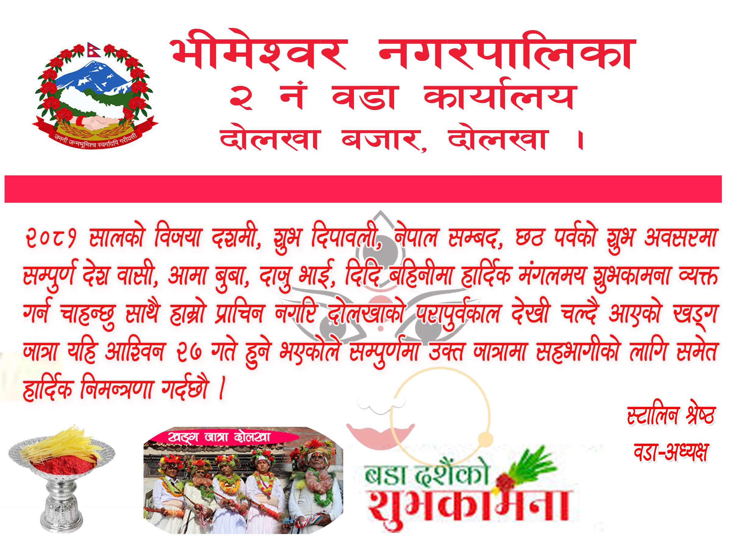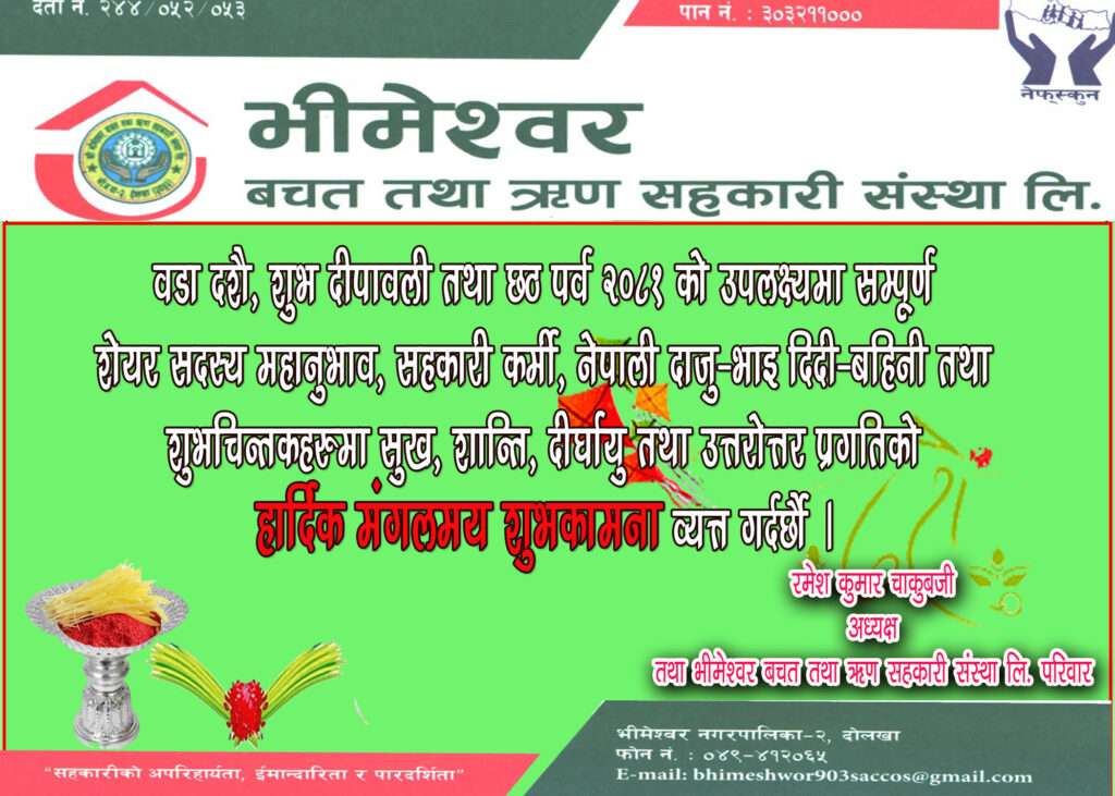 ०६ कार्तिक, दोलखा । घन्टाको इतिहास धेरै पुरानो भए पनि दोलखामा भने ठुला घण्टाहरु बि. सं. १९०० पछी मात्र स्थापना गरिएको देखिन्छ । भीमेश्वर स्थानमा घण्टा प्रतिस्थापन गर्नेका सन्तानहरुले हाल आएर उसबेलाका झिर्ण घण्टाहरुको स्थानमा नयाँ घण्टा राखेर आफ्ना पुर्खाका पुन्य कामलाइ चिरस्थाई गरेका छन् । केहि बर्ष अघि कर्नेल फ़ौदसिंह क्षेत्रीका सन्तानले यो काम गरेका थिए भने हाल चंद्रबिर बसन्यात क्षेत्रीका सन्तानले गरेका छन् । उहाँहरुको कामले अरुहरुलाई पनि अवश्य प्रेरणा दिने छ ।