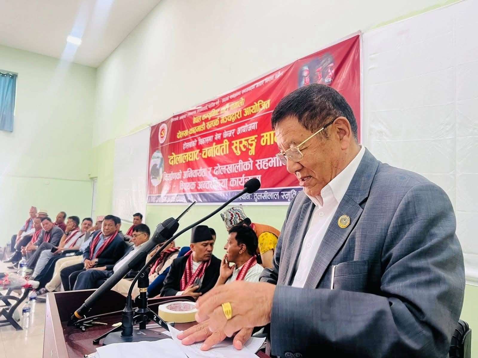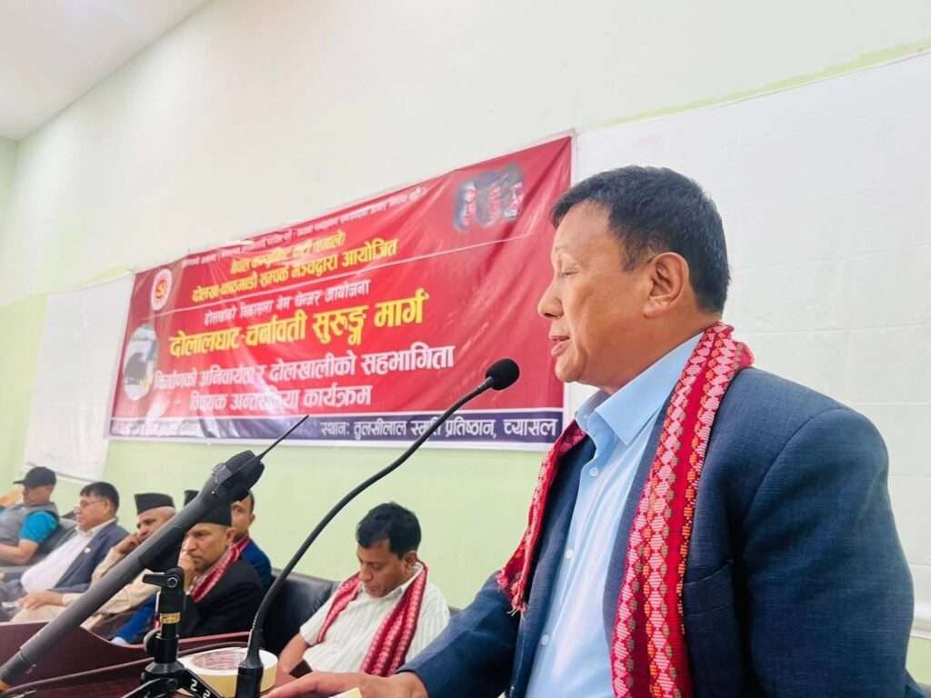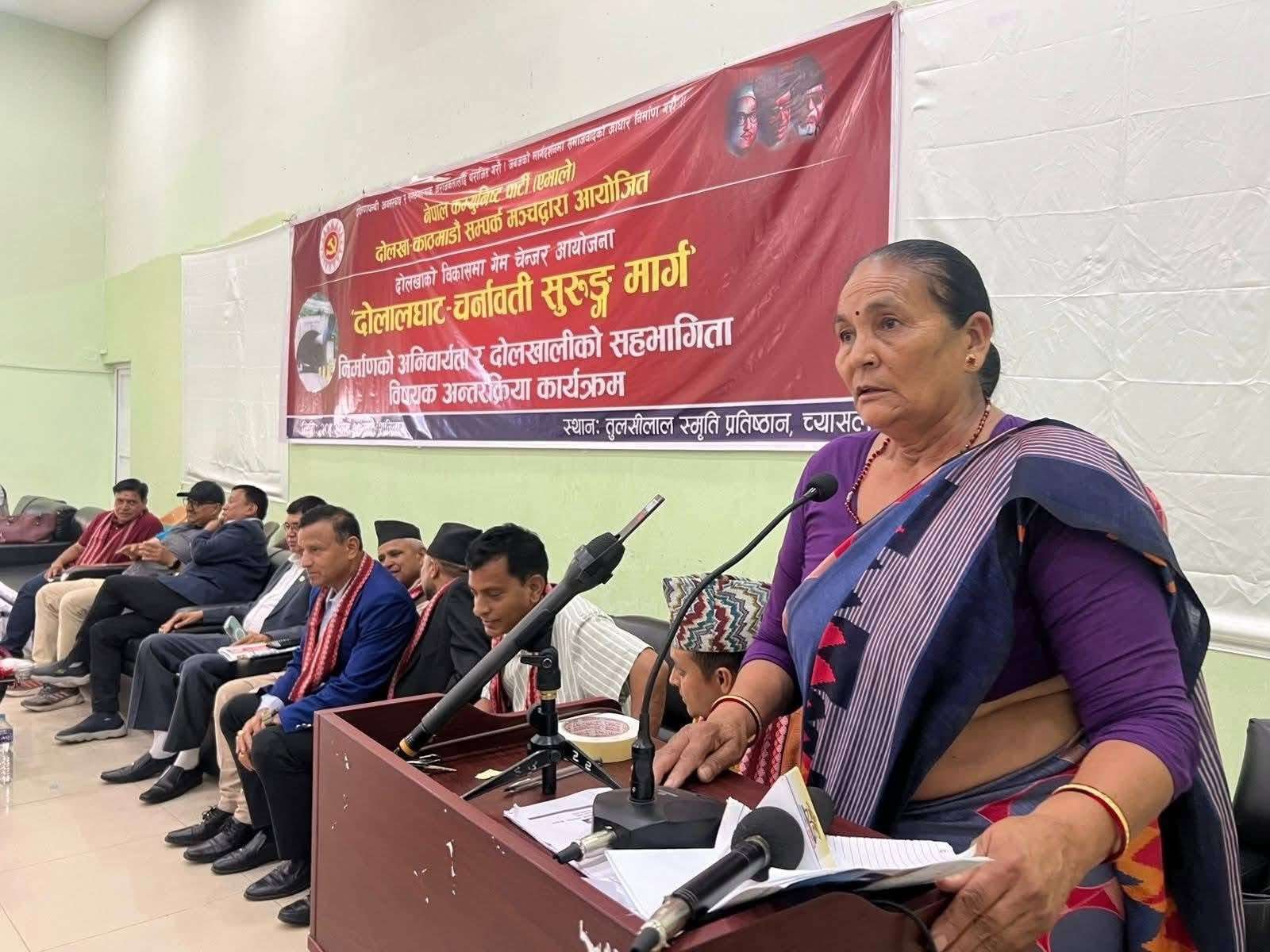 बजेटले परिकल्पना गरेको सुरुङ मार्गको सम्भाव्यतामाथि छलफल गर्न नेकपा एमाले दोलखा–काठमाडौं सम्पर्क मञ्चले शनिबार काठमाडौंमा आयोजना गरेको अन्तरक्रिया कार्यक्रममा सरोकारवालाहरूले यस्तो धारणा व्यक्त गरेका हुन् । भौतिक पूर्वाधार तथा यातायातमन्त्री देवेन्द्र दाहालको प्रमुख आतिथ्यता आयोजित कार्यक्रममा नेकपा माओवादी केन्द्रबाहेक दोलखाका सबै राजनीतिक पार्टीका नेतृत्व र प्रतिनिधिहरूले आम सर्वसाधारणलाई सहजताका साथै दोलखाको आर्थिक, धार्मिक र पर्यटकीय विकासका लागि दोलालघाट–चर्मावाती सुरुङ मार्ग ‘गेम चेञ्जर प्रोजेक्ट’ हुने बताए ।